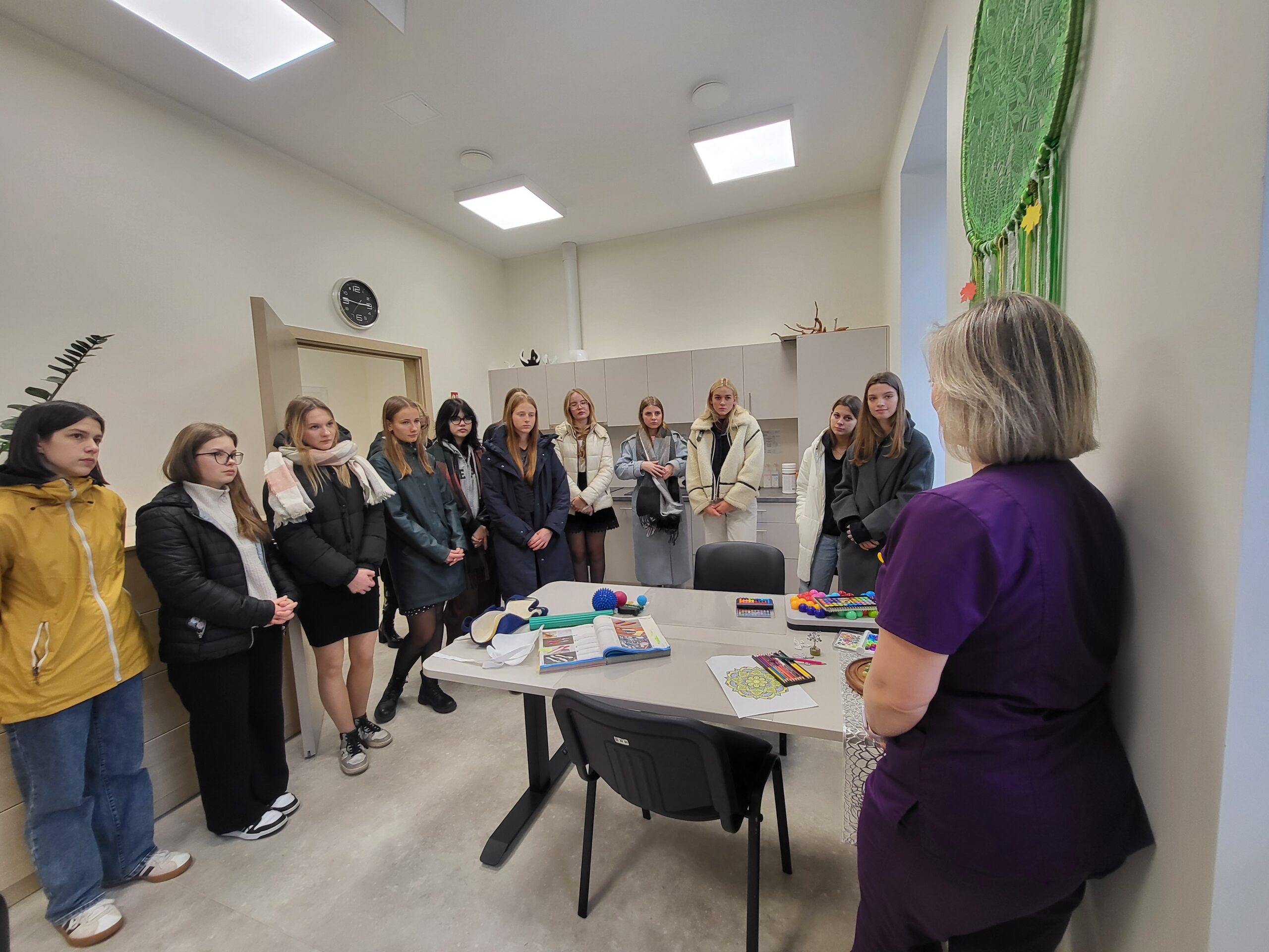 Vizītes laikā skolēni guva priekšstatu par to, kā norit ārstniecības process psihoneiroloģiskajā slimnīcā — sākot no pacienta uzņemšanas un diagnostikas līdz rehabilitācijai un sociālajai atveseļošanai. Slimnīcas speciālisti iepazīstināja skolēnus ar nemedikamentozajām ārstniecības metodēm, kas mūsdienās tiek plaši izmantotas psihiatrijā – elektrokonvulsīvo terapiju (EKT) un transkraniālo magnētisko stimulāciju (TMS). Jaunieši varēja uzzināt, kā šīs metodes palīdz pacientiem ar smagiem depresijas un citiem psihiskiem traucējumiem, īpaši gadījumos, kad medikamentozā terapija nav devusi pietiekamu efektu.